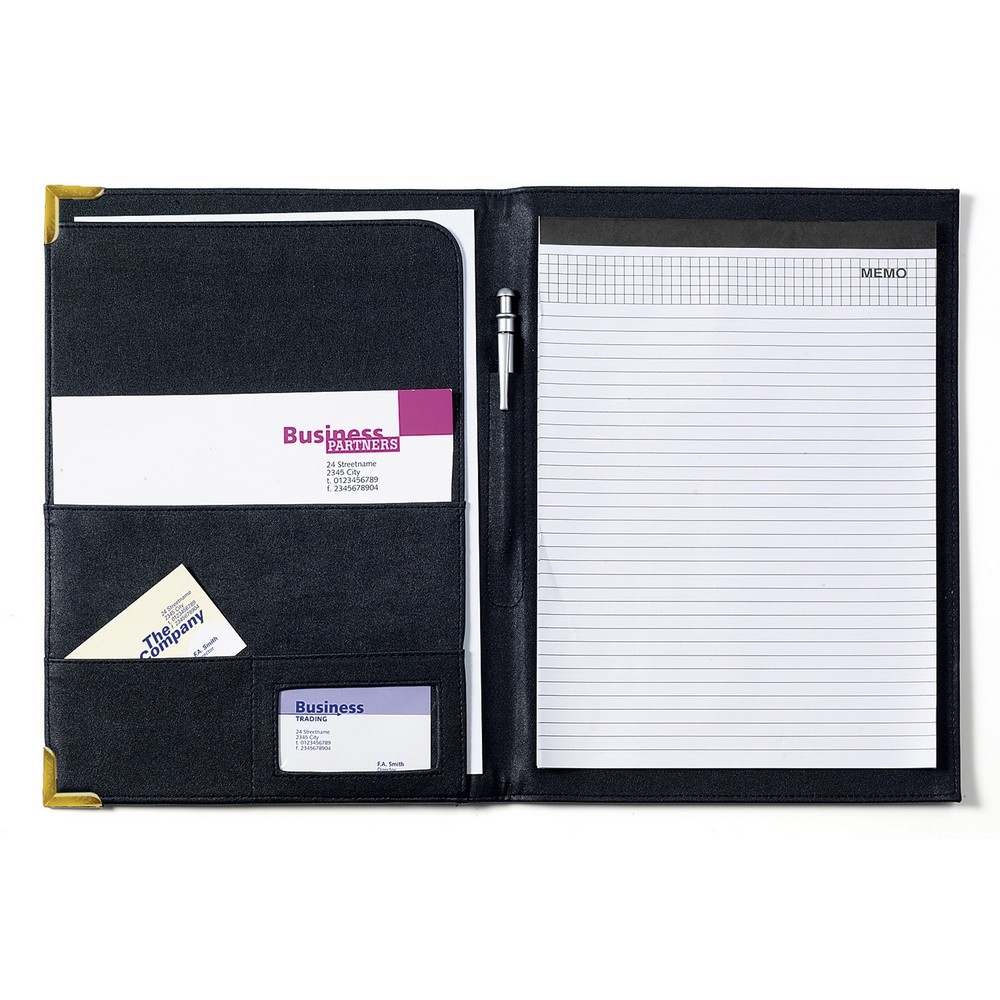 Die Konferenzmappe „Edinburgh“ ist der ideale Begleiter für professionelle Meetings und Präsentationen. In elegantem Schwarz oder Dunkelblau gehalten, bietet sie Platz für alle wichtigen Unterlagen im A4-Format. Gefertigt aus hochwertigem Metall, PU und PVC, vereint sie Robustheit mit stilvollem Design. Mit einem Gewicht von nur 490 g ist sie leicht zu transportieren und dennoch stabil. Perfekt organisiert, ohne Notizblock und Stift, bietet sie Flexibilität für Ihre individuellen Bedürfnisse. Die „Edinburgh“ ist ein Must-have für alle, die Wert auf Qualität und Stil legen. Ideal für den täglichen Einsatz im Büro oder unterwegs.