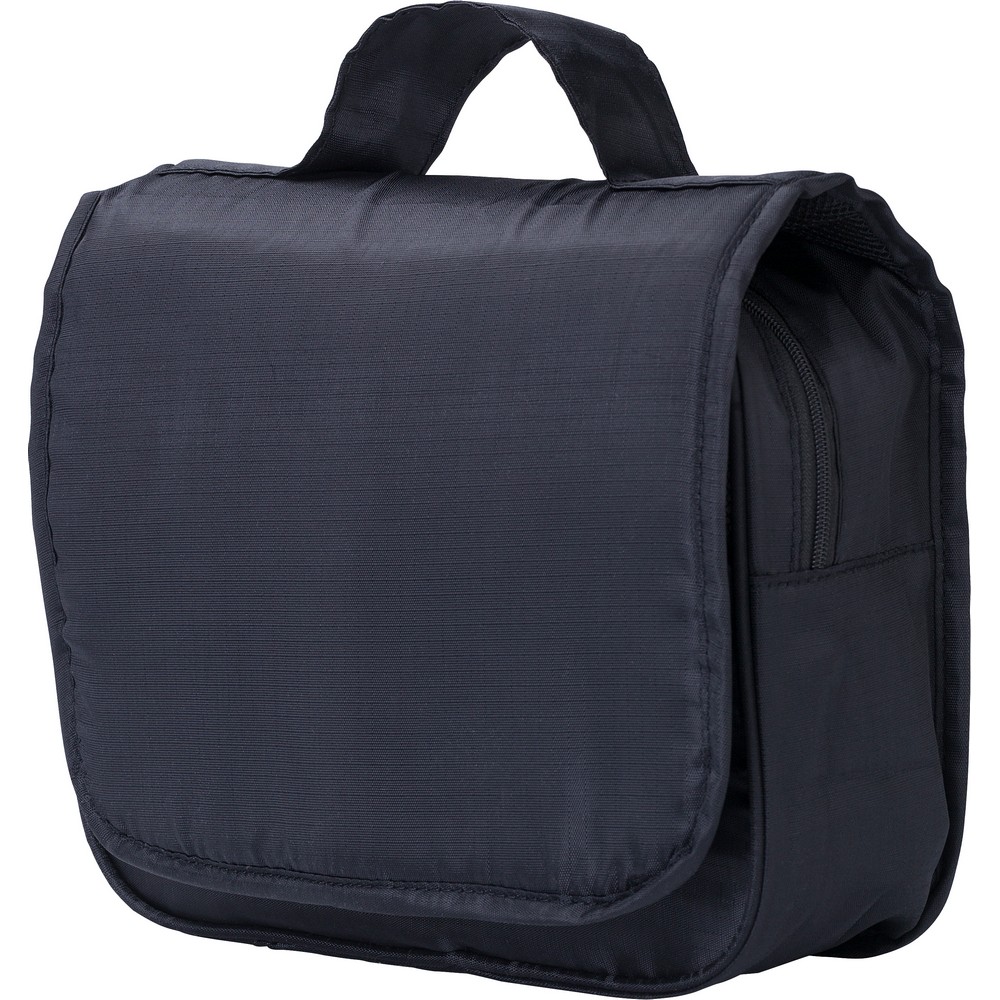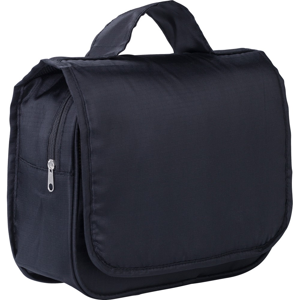 Entdecken Sie die perfekte Kosmetiktasche für Ihr Marketing: Diese elegante, schwarze Travel Cosmetic Bag vereint Funktionalität mit Stil. Mit praktischen Innenfächern – darunter eine große, netzartiger mit Reißverschluss, eine kleine und eine transparente Tasche – erleichtert sie den Alltag Ihrer Kunden, während der integrierte Haken vielseitige Aufbewahrungsmöglichkeiten bietet.