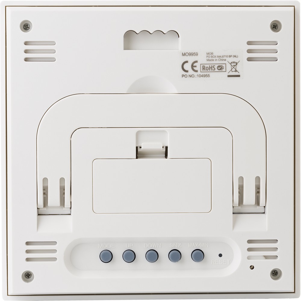Entdecken Sie die Premium-Wetterstation – der perfekte Imageträger für Ihre Marke. Mit einem eleganten Design aus Bambus und Glas vereint dieses multifunktionale Gerät eine Uhr, einen Kalender, einen Alarm sowie Temperatur- und Luftfeuchtigkeitsmessung. Ihre Geschäftspartner und Kunden werden die praktische Nutzung im Alltag schätzen, während Ihr Logo täglich ins Blickfeld rückt.